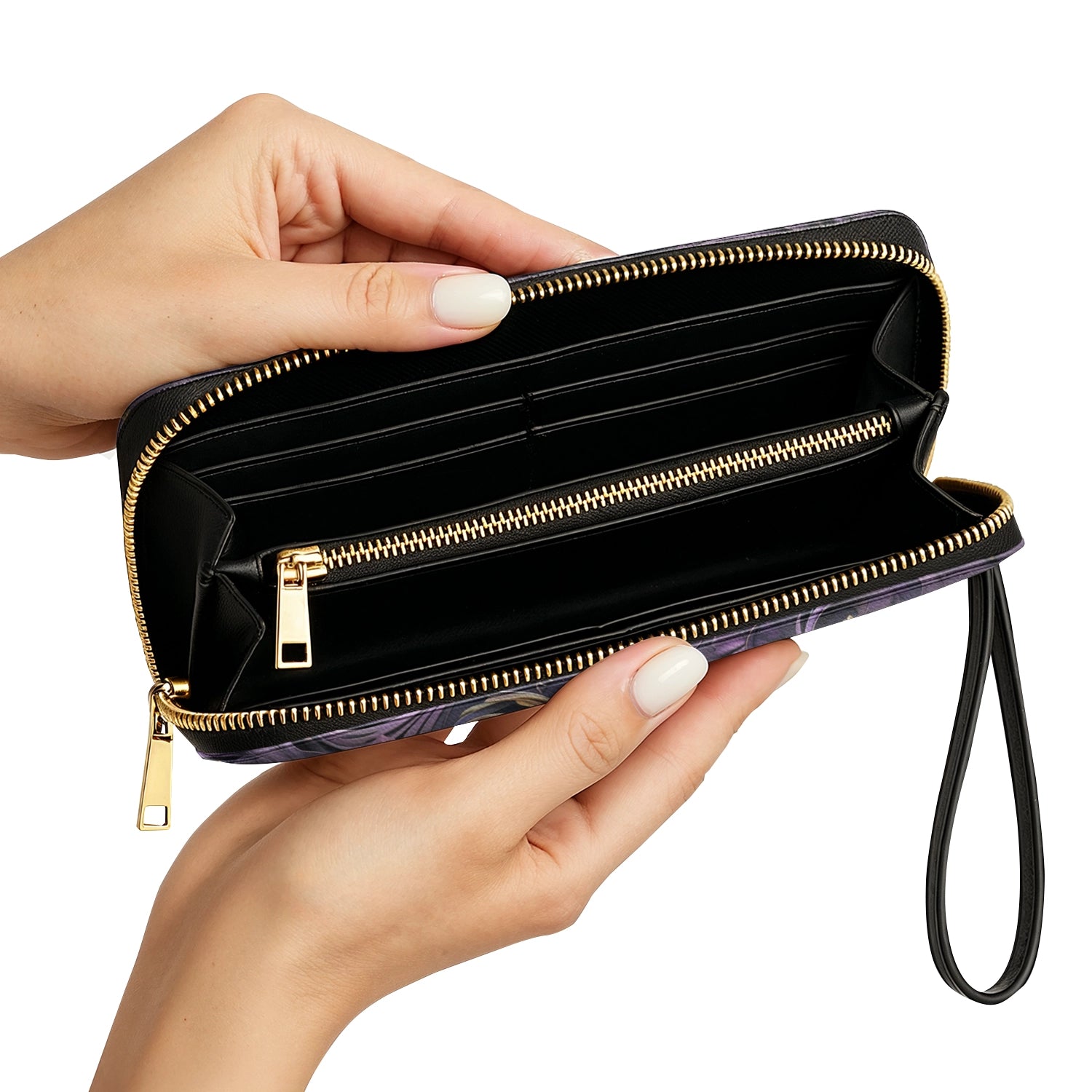 Inside, you’ll find four card slots, two full-length compartments for cash or notes, and a center zip pocket for small keepsakes like pressed flowers, a lucky charm, or coins. Whether you’re out for a nature walk, picking up fresh blooms, or heading to your favorite café, this timeless wallet keeps your essentials beautifully in place — no clutter, no bulk, just function that flows with your rhythm.